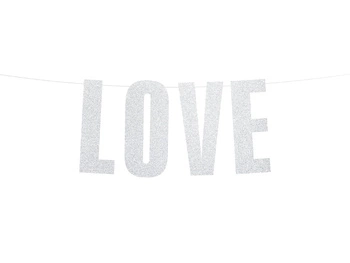 Baner Love, srebrny, 21x55cm