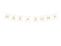 - Banery z napisami - gotowe banery z frazami takimi jak: “Mąż i Żona”, "Mr&Mrs", "Just Married", "Witamy", które można zawiesić nad stołem młodej pary, na wejściu do sali lub w strefie zdjęciowej.