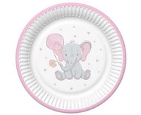 Talerzyki Baby Elephant with Pink Ballon, 8 szt.