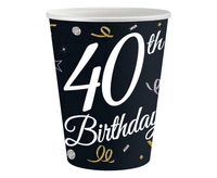 Serwetki Happy 40 Birthday, czarne, nadruk złoty, certyfikat FSC, 33x33 cm/ 20 szt.