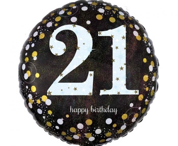 Balon foliowy 18" - 18c Holo sparkling Birthday 21