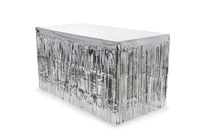 Skirting foliowy z frędzlami, srebrny, 300x80cm
