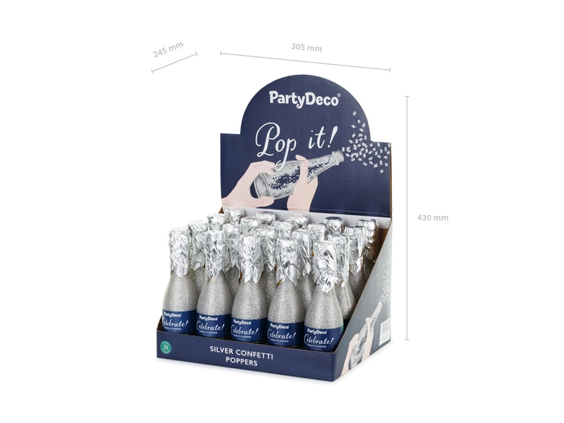 Tuba z konfetti Szampan, srebrny, 20.5cm