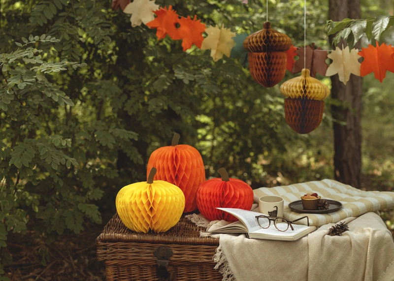 Dekoracja bibułowa Dynie, 18-30cm, mix (1 op. / 3 szt.)