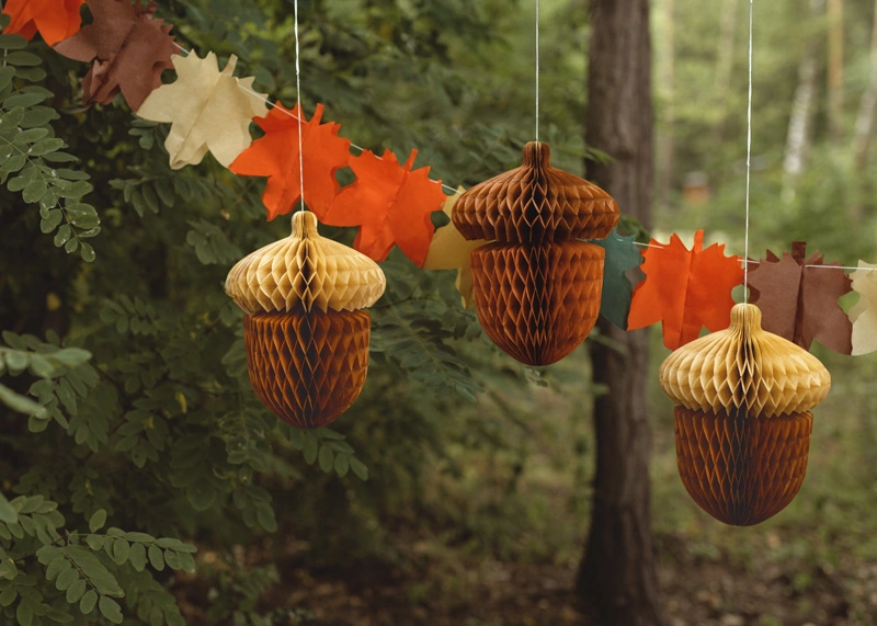 Dekoracja bibułowa Żołędzie, 27cm, mix (1 op. / 2 szt.)