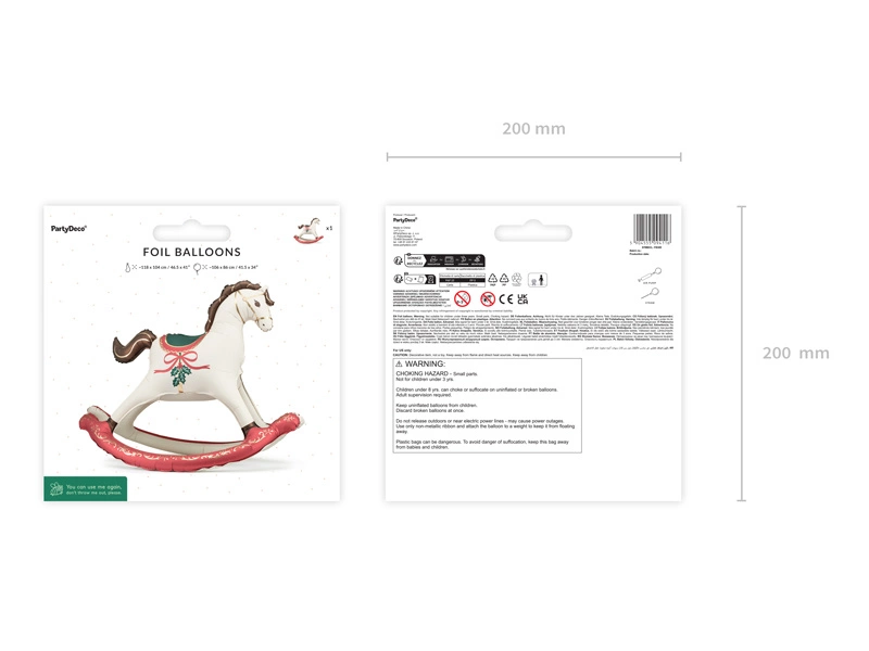 Balon foliowy świąteczny Koń na biegunach, 118x104 cm, mix