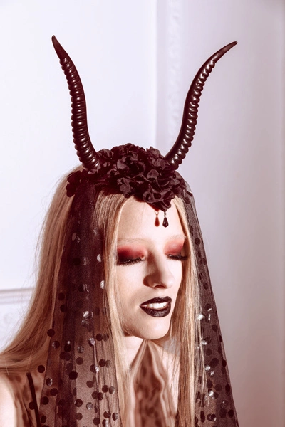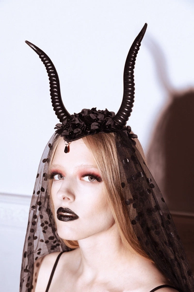 Opaska Rogi z tiulem, 30x76 cm, czarny