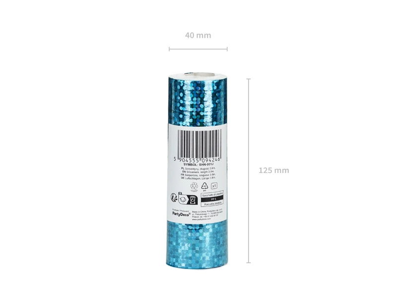 Serpentyny holograficzne, jasny niebieski, 3,8 m (1 op. / 18 szt.)