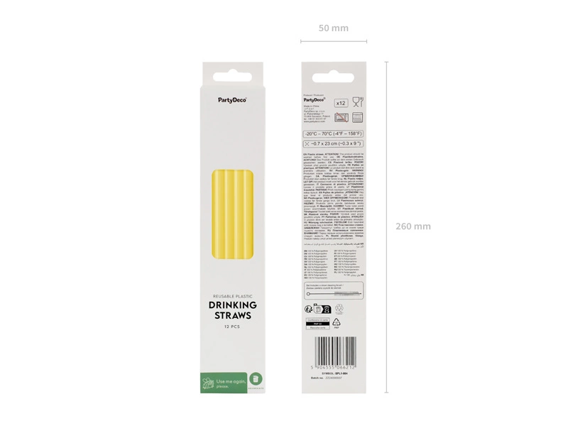 Słomki plastikowe, 23 cm, żółty (1 op. / 12 szt.)