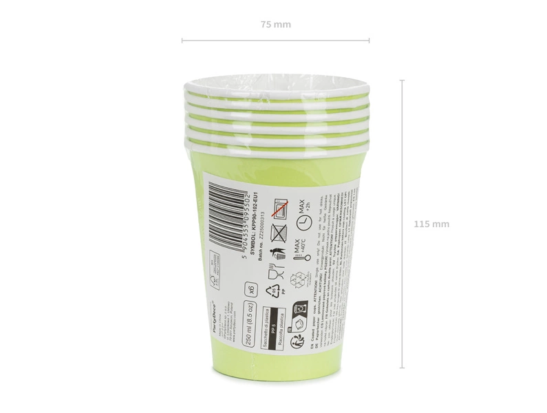 Kubeczki papierowe, jasny zielony, 250ml (1 op. / 6 szt.)