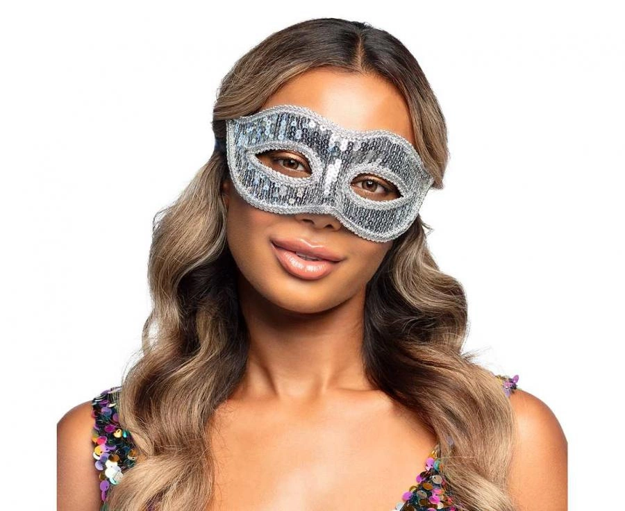 Elegancka maska wenecka • Srebrne cekiny • Wielorazowe • 1 szt. w opakowaniu • Wysyłka w 1 dzień