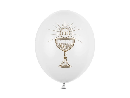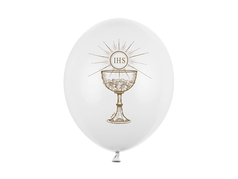 - Balony Strong IHS w kolorze Pastel Pure White z dwustronnym, złotym nadrukiem, średnica 30 centymetrów. (1 op. / 50 szt.)