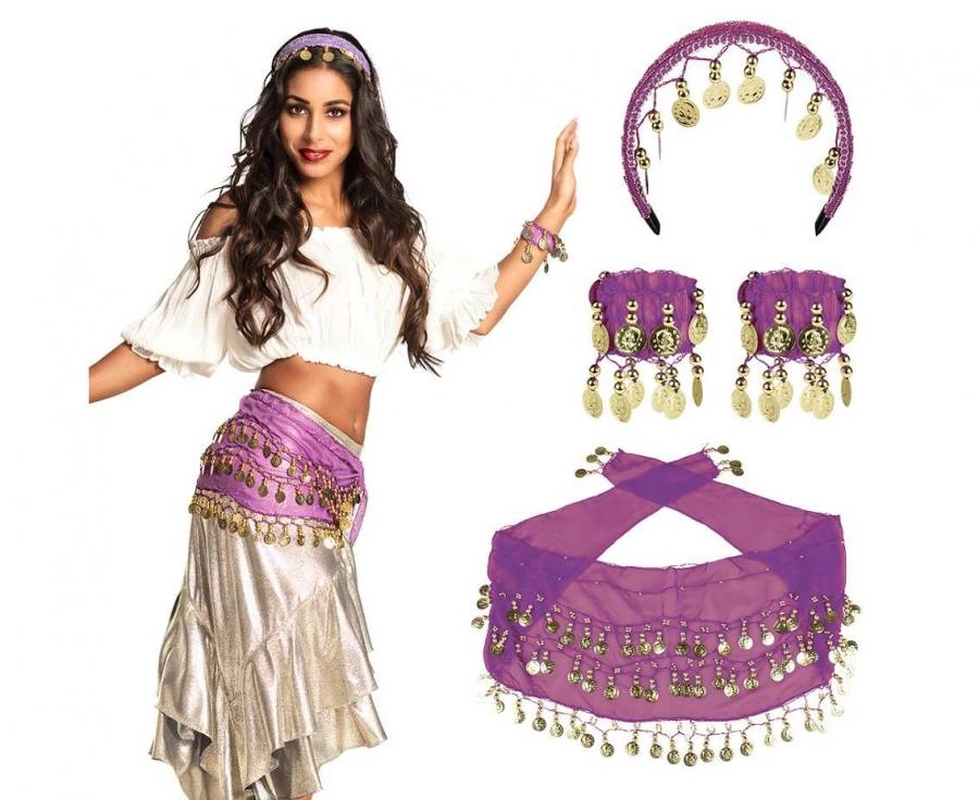 Zestaw Strój Cyganki (fioletowa opaska, 2 bransoletki, pas)