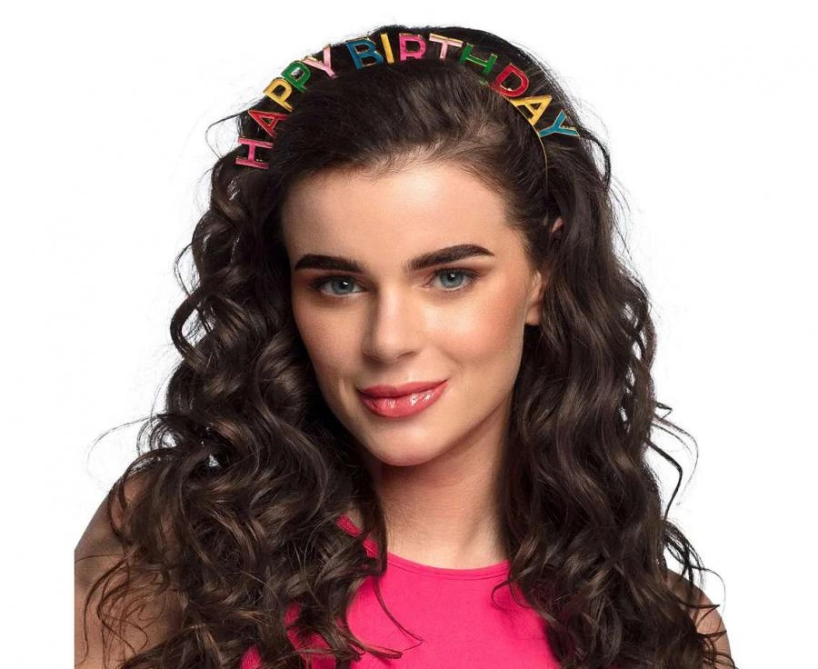 Opaska metalowa "Happy Birthday" to metalowy pałąk w złotym kolorze z wielobarwnym, czytelnym napisem HAPPY BIRTHDAY. Rozmiar uniwersalny, 1 sztuka w opakowaniu od producenta Boland. Przeznaczona na przyjęcia urodzinowe — do noszenia przez solenizanta i jako rekwizyt do zdjęć.