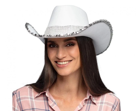 Kapelusz kowbojski damski, biały z cyrkoniami