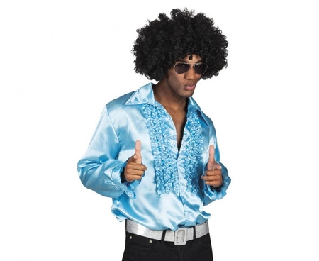 Turkusowa koszula męska rozmiar L (50–52) wykonana z poliestru. Klasyczny fason i wyrazisty odcień turkusu sprawdzą się na imprezy tematyczne: disco, lata 70., karnawał, wieczór panieński z motywem retro czy stylizowane urodziny. Prosty krój ułatwia dopasowanie do kostiumu.