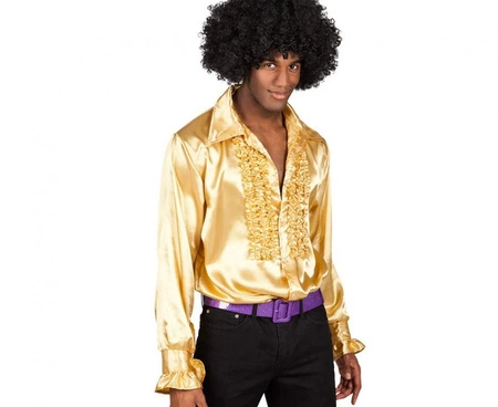 Jeśli potrzebujesz wyraźnego elementu stylizacji na imprezę tematyczną, ta złota koszula DISCO sprawdzi się jako element stroju i tła do zdjęć. Sprawdź dostępny rozmiar (XXL) i wybierz jedną sztukę.