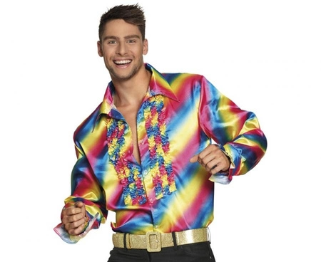 Koszulka party • Tęczowy wzór • 1 szt. w opakowaniu • Idealna na imprezy • Wygodny krój • 100% poliester