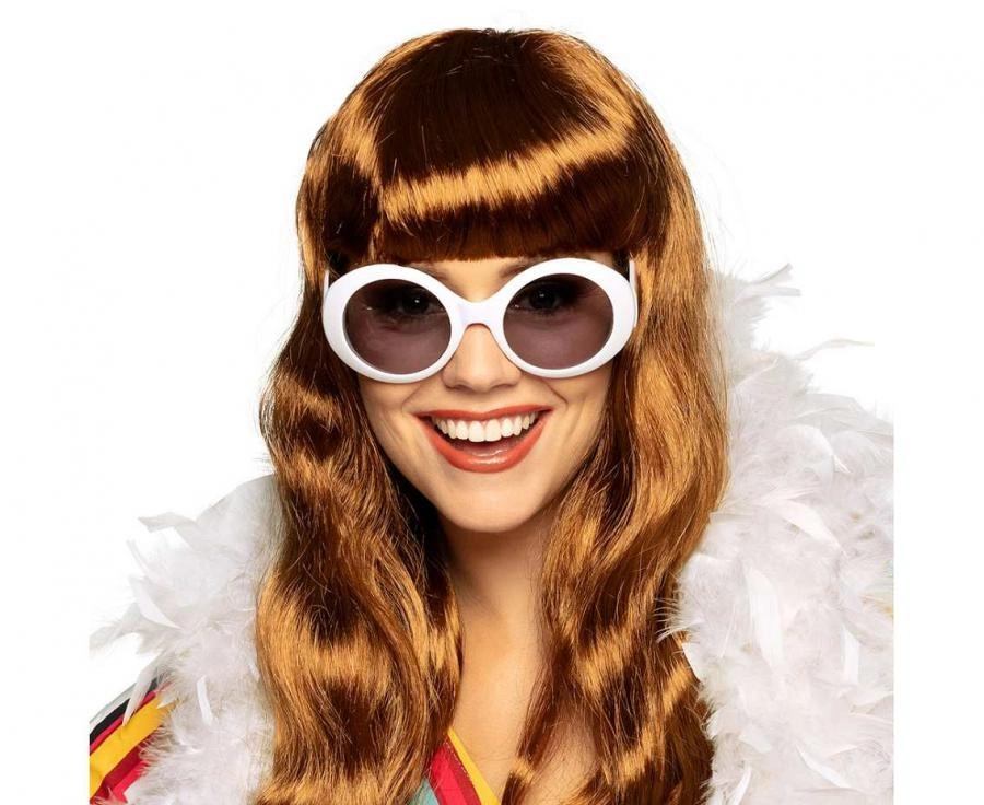 Okulary Jackie, białe — plastikowy rekwizyt w rozmiarze uniwersalnym, sprzedawany po 1 sztuce (producent Boland). Przeznaczone do wykorzystania jako gadżet do fotobudki i przebrania na imprezy: wieczór panieński, karnawał, urodziny, stylizacje retro czy tematyczne sesje zdjęciowe.
