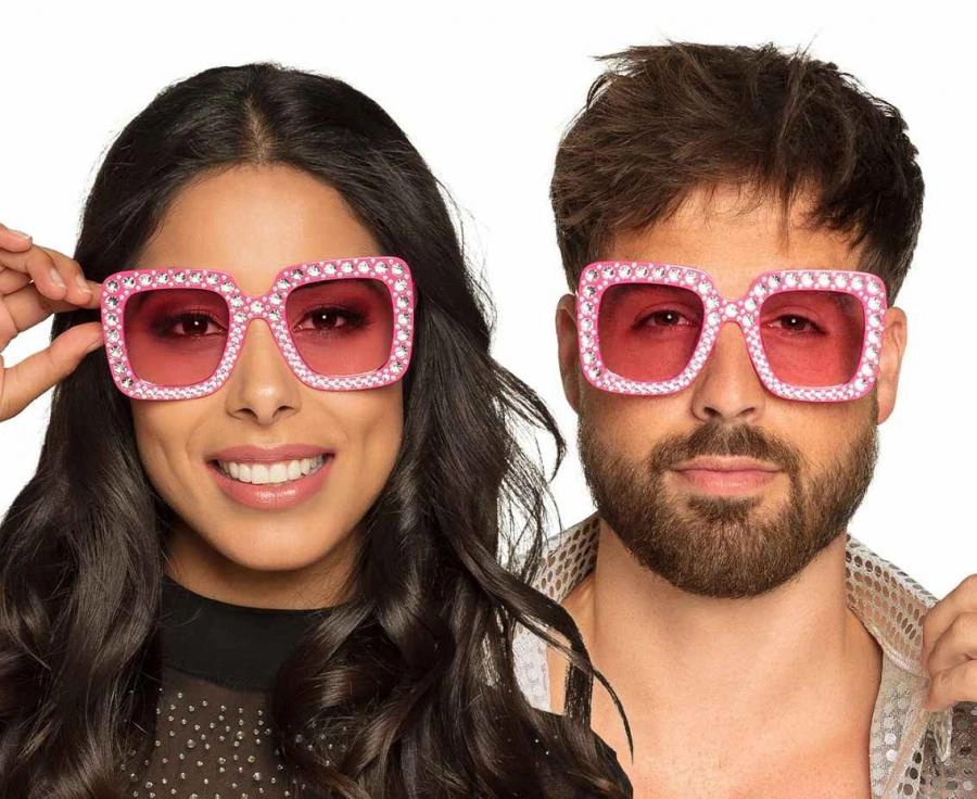 Okulary Party Bling to różowe, kwadratowe okulary imprezowe (1 szt.) marki Boland, wykonane z lekkiego tworzywa z zatopionymi srebrnymi cekinami. Uniwersalny rozmiar sprawdza się na wieczory panieńskie, urodziny, karnawał, Sylwestra oraz jako rekwizyt do fotobudki.