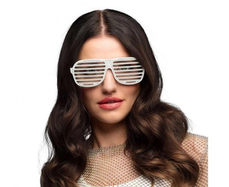 Okulary Party Spectacular w kolorze białym to uniwersalne okulary imprezowe z plastikową oprawką i poziomymi, brokatowymi paskami zamiast szkieł. Przeznaczone do karnawału, wieczoru panieńskiego, tematycznych przyjęć i sesji zdjęciowych jako efektowny dodatek do stroju.