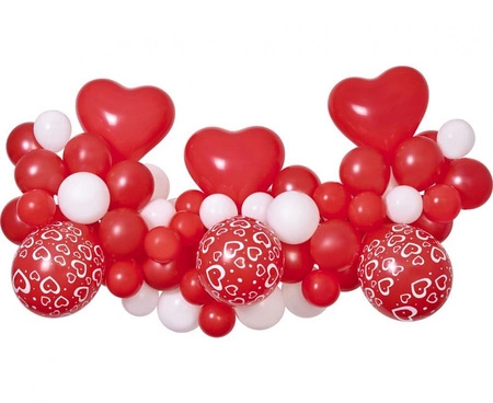 Girlanda balonowa DIY Love to kompletny zestaw do samodzielnego wykonania girlandy w odcieniach czerwieni i bieli. Zestaw zawiera balony w kilku rozmiarach oraz 3‑metrową taśmę montażową. Produkt sprawdzi się jako dekoracja tła, wejścia lub stołu na wesela, walentynki i wieczory panieńskie.