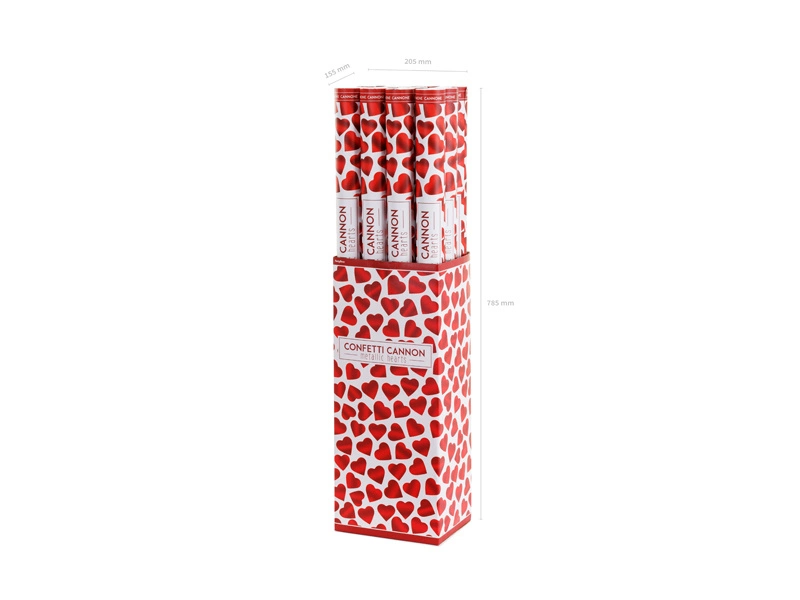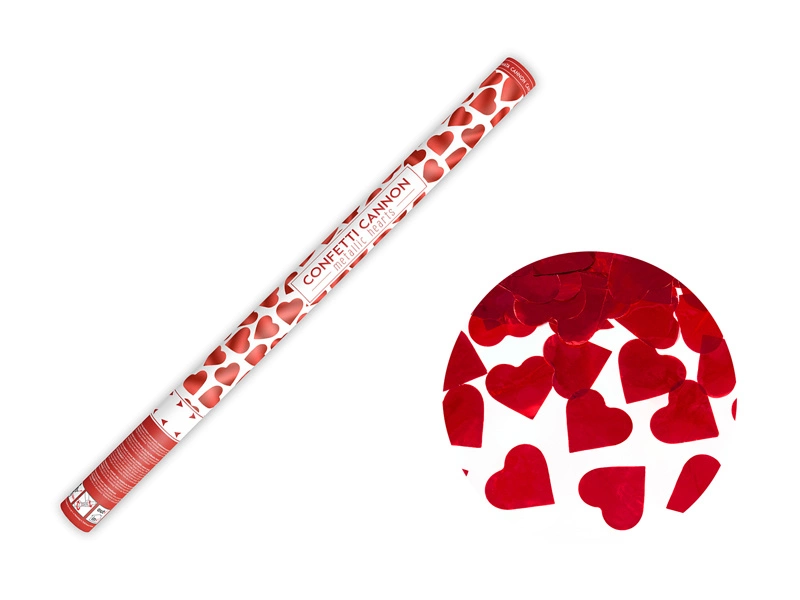 - Tuba strzelająca metalizowanymi sercami w kolorze czerwonym, długość 80 centymetrów.