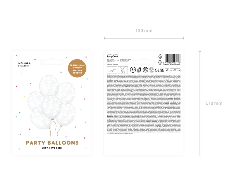 - Balony Strong Chmurki w kolorze Crystal Clear, z białym, pięciostronnym nadrukiem, średnica 30 centymetrówi. (1 op. / 6 szt.)