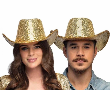 Kapelusz kowbojski • Złoty kolor • Efektowne cekiny • Idealny na festiwale • Uniwersalny rozmiar