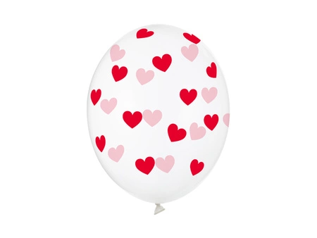 - Balony Strong Serduszka w kolorze Crystal Clear, z czerwonym, pięciostronnym nadrukiem, średnica 30 centymetrów. (1 op. / 50 szt.)