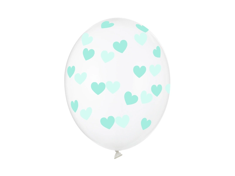 - Balony Strong Serduszka w kolorze Crystal Clear, z miętowym, pięciostronnym nadrukiem, średnica 30 centymetrów. (1 op. / 50 szt.)