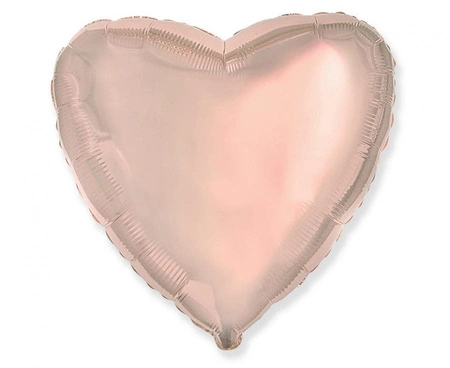 Balon foliowy w kształcie serca (18 cali, różowo-złoty) marki Flexmetal. Wymiary przed napompowaniem: wysokość 46 cm, szerokość 48 cm. Przeznaczony do napełnienia helem — po napompowaniu powietrzem nie unosi się. Sprzedawany luzem, 1 sztuka; odpowiedni na wesele, wieczór panieński i urodziny.