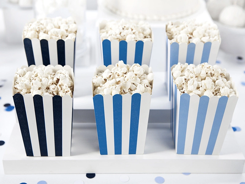 - Użyj pudełek na popcorn nie tylko do popcornu, ale także do innych przekąsek, takich jak orzeszki, cukierki czy mini ciasteczka.