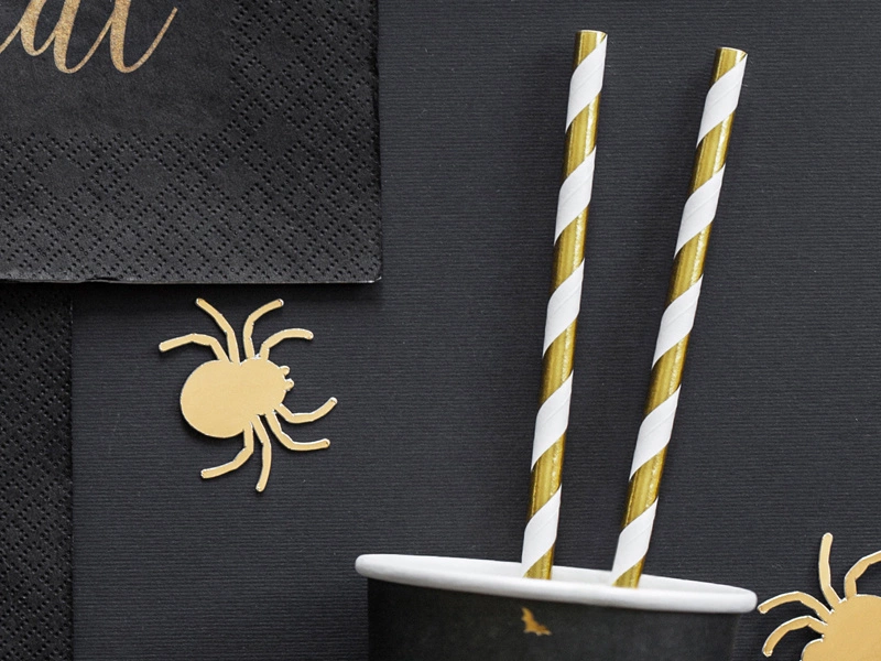 - Aby uzyskać jeszcze bardziej efektowny wygląd, połącz złote słomki z innymi złotymi dekoracjami, takimi jak konfetti czy balony.