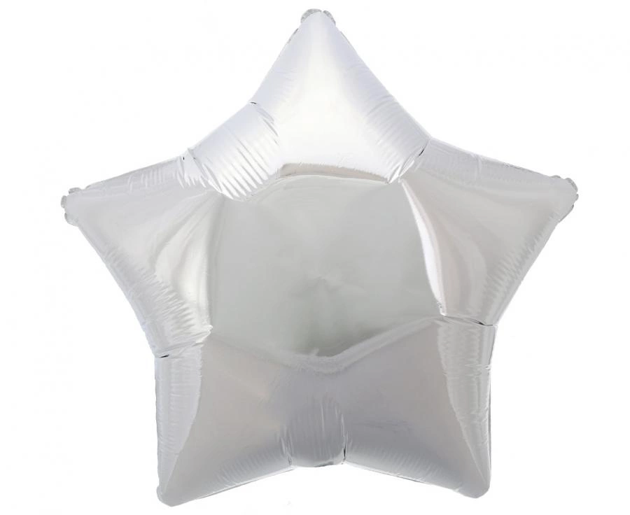 Balon foliowy JUMBO w kształcie gwiazdy, kolor srebrny, wymiary przed napompowaniem: 73 x 77 cm. Produkt przeznaczony do napełnienia helem — unosi się tylko po napompowaniu helem. Nadaje się jako pojedynczy akcent dekoracyjny lub element kompozycji na wesele, urodziny, wieczór panieński czy Sylwestra.