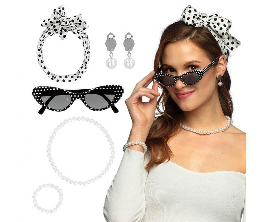 Zestaw lata 50' (apaszka, okulary party, naszyjnik, bransoletka)