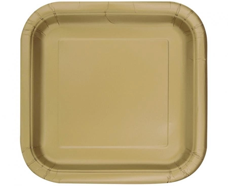 Talerzyki papierowe, złote, 23 cm, kwadratowe, 14 szt.