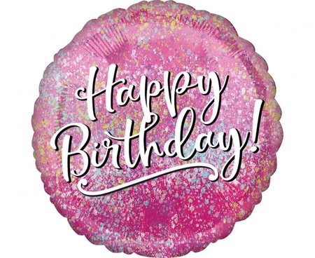 Balon foliowy 18 cali (46 cm) CIR Pink Fabulous to okrągły, różowy balon z nadrukiem „Happy Birthday”, pakowany pojedynczo przez Amscan. Nadaje się na urodziny, wieczór panieński czy baby shower. Można napełnić helem dla unoszenia lub powietrzem do girland i aranżacji.