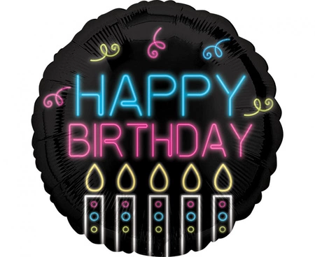 Balon foliowy Neon Birthday, okrągły, 43 cm, zapakowany