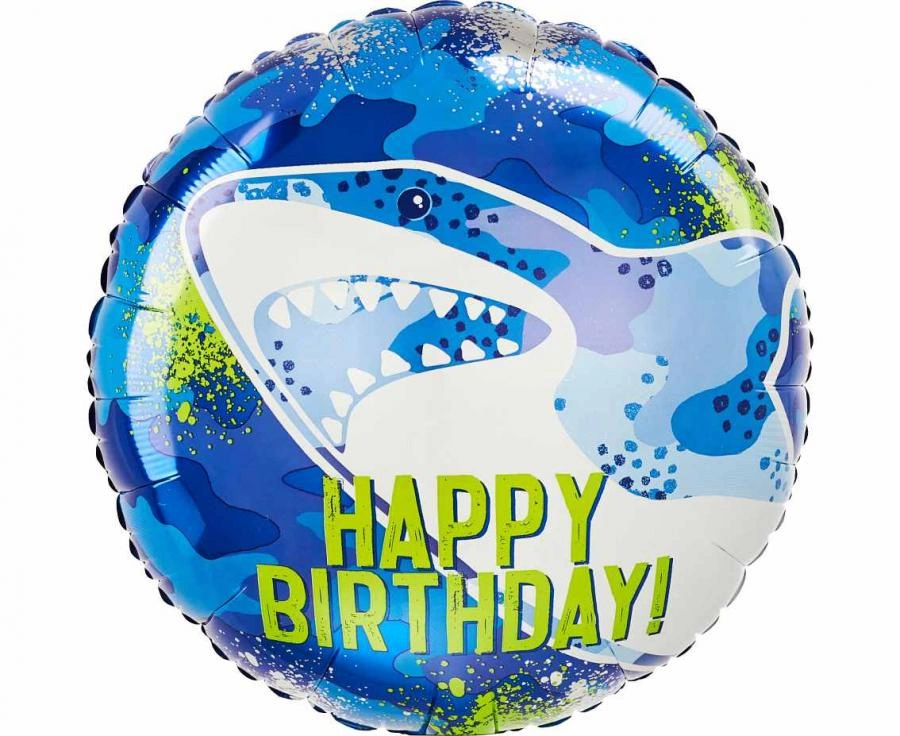 18" • Wzór: Happy Birthday, rekiny • Czas unoszenia: 4-7 dni • Wielorazowe: Tak