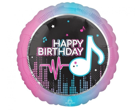 Balon foliowy 18" (46 cm) z nadrukiem "Happy Birthday" i motywem nuty. Okrągły, wielokolorowy balon przeznaczony do napełnienia helem lub powietrzem; sprawdzi się na urodzinach, przyjęciach tematycznych oraz jako element tła fotograficznego. W opakowaniu 1 sztuka, wysyłany nienapełniony.