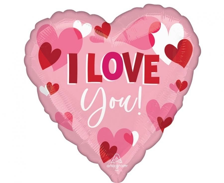 Balon foliowy Jumbo - I Love You Playful Hearts, 71x71 cm,zapakowany
