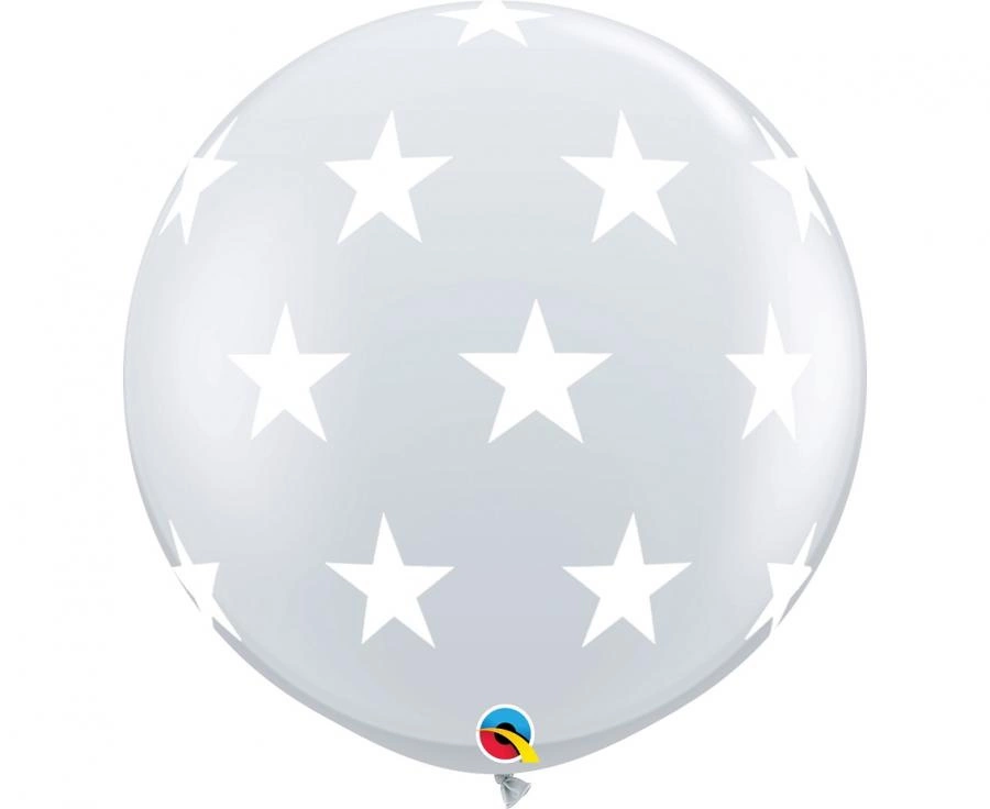 Balon foliowy Qualatex 36" (ok. 91 cm), przezroczysty z nadrukiem gwiazdek, 2 szt. w opakowaniu. Okrągły balon można napełnić helem lub powietrzem; nadaje się do dekoracji stołu, tła do zdjęć lub jako pojedynczy akcent na uroczystościach typu urodziny, baby shower, wieczór panieński czy świąteczne przyjęcia.