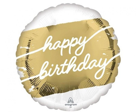Balon foliowy 18" (46 cm) „Golden Age” marki Anagram — okrągły balon urodzinowy w odcieniach złotego i białego, sprzedawany po 1 sztuce. Przeznaczony do napełnienia helem (napełnienie powietrzem nie zapewnia unoszenia). Nadaje się na urodziny, jubileusze i tła do zdjęć.