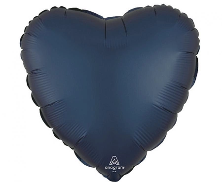 Balon foliowy w kształcie serca 18" (ok. 46 cm) w kolorze granatowym. Produkt marki Anagram, bez nadruku, sprzedawany pojedynczo i wysyłany nienapełniony. Przeznaczony do napełnienia helem (będzie się unosić) lub powietrzem (do mocowania jako element dekoracji). Sprawdzi się na wesela, wieczory panieńskie, urodziny i Walentynki.