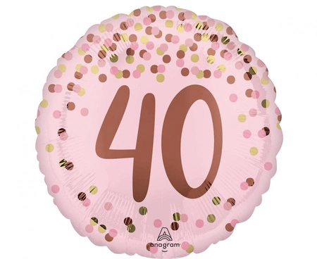 Balon foliowy 18" (46 cm) „Pretty pink” z nadrukiem liczby 40 od producenta Anagram. Okrągły, różowy balon przeznaczony na 40. urodziny, sprawdzi się jako element bukietu balonowego, dekoracja stołu, tło do zdjęć lub dodatek na wieczór panieński. Balon wysyłany jest nienapełniony.
