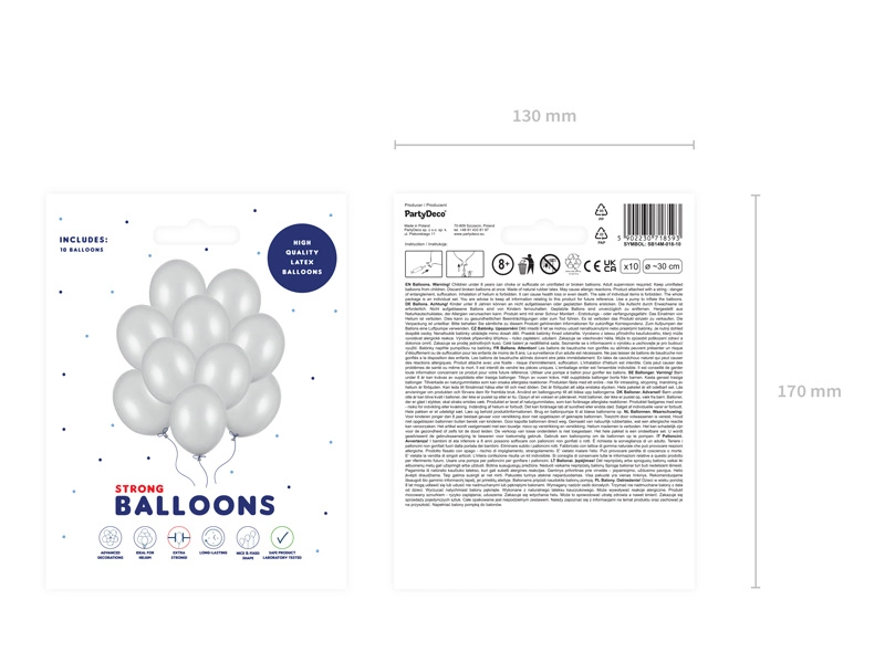 Wprowadź odrobinę luksusu i blasku na swoją imprezę dzięki balonom Strong w kolorze Metallic Silver Snow! Te wyjątkowe balony o średnicy 30 cm są doskonałym dodatkiem na każdą okazję, od wesel i wieczorów panieńskich po urodziny, Halloween, baby shower, Boże Narodzenie i Walentynki. W opakowaniu znajduje się 10 sztuk, co pozwala na stworzenie efektownej dekoracji.