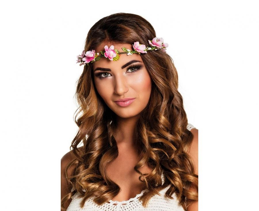 Opaska na głowę Mallorca Hippie z różowymi sztucznymi kwiatami. Lekka opaska plastikowa w stylu hippie, rozmiar uniwersalny — łatwa do założenia. Sprawdza się jako dodatek na Sylwestra, Karnawał, wieczór panieński, urodziny oraz festiwale i sesje zdjęciowe.