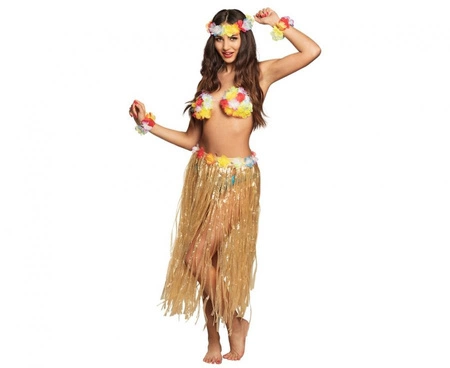 Zestaw hawajski Paradise (biustonosz, opaska na głowę, spódniczka, 2 bransoletki)