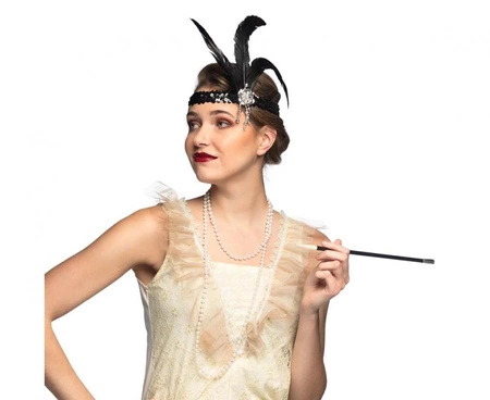 Zestaw Retro lata 20' (opaska, naszyjnik, cygaretka)